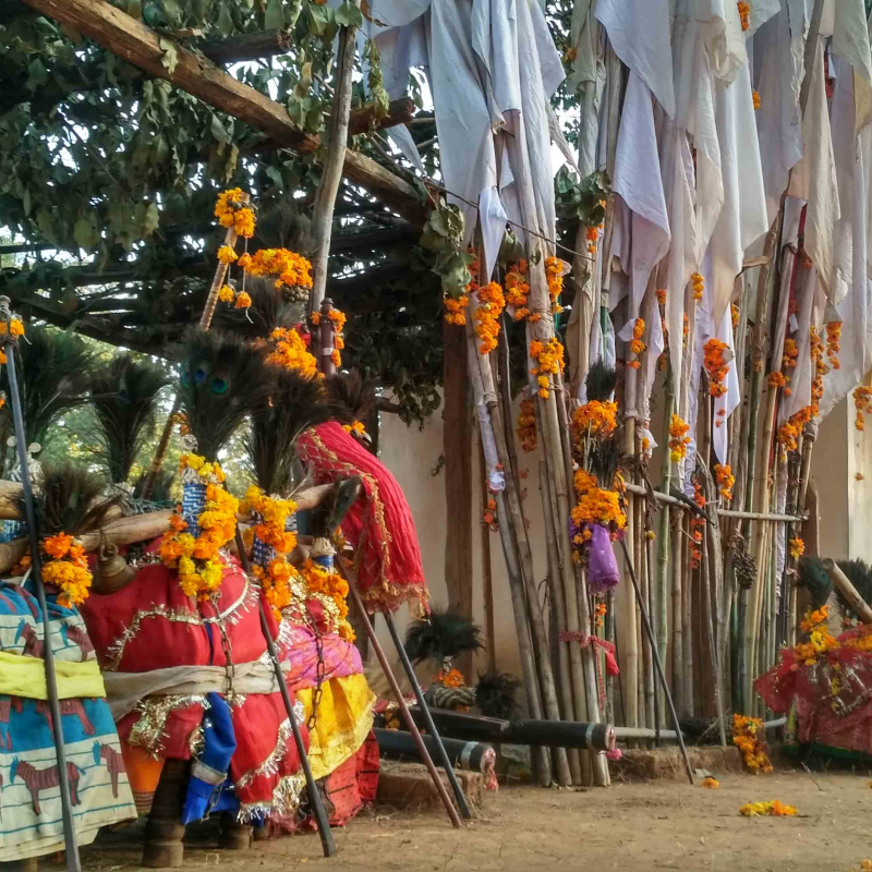 The word, Madai, literally translates into a ‘meeting’. It is the meeting of the ancestral gods of the adivasis with their kins, of the Vedic/Vedantic goddess with their earthly adaptations, of men and women with their kins and friends and finally that of gods with each other and with men through the vehicles of the human body and the anga, dang and doli. The carriers of the anga, dang and doli are often possessed, and it is believed that are driven by the divine energy of their ancestors or of the devi.