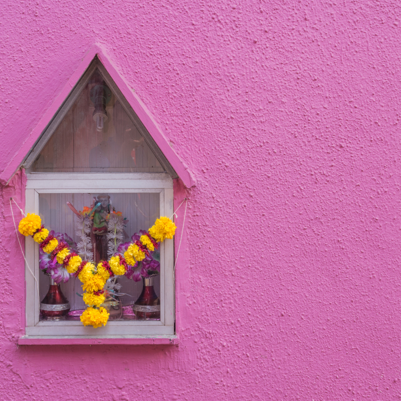 However, a few characteristics, unique to the community, can still be observed. The houses have distinctly Portuguese architecture and are brightly painted. A typical house consists of a veranda (oli), used for repairing nets and receiving visitors; a sitting-room (angan), used by women for household work; a kitchen; a central apartment; a bedroom; a devotional room (devaghar) and a detached bathroom. The upper floor is connected to the lower floor with an external staircase. The indoors are simple and cosy with a lot of family pictures and religious symbols.