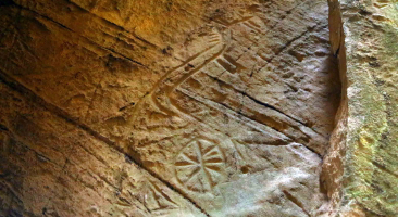Edakkal cave is situated at Ambukutty Hills, near Ambalavayal, in the Wayanad district of Kerala at a height of 400 feet above the sea level. The cave was naturally formed centuries before when a mammoth rock had fallen over the top, like roofing, into a 98 feet wide and 22 feet long large notch. The two natural caves were first identified as a site of anthropological and historical importance by F. Fred Fawcett, a former Superintendent of Police who served the British government in Kozhikode. It was only after the publication of Fawcett’s articles on the caves in the journal Indian Antiquary that scholars started engaging in a sincere study of its rock engravings. Even so, no exhaustive archaeological study of the site has been done so far.