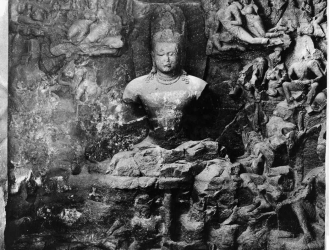 Images of the carvings in the caves of Elephanta, many of which depict actions of Shiva. Details of many scenes are included. There are also images of the massive pillars and doors that were cut out from the rock to serve as architectural members.