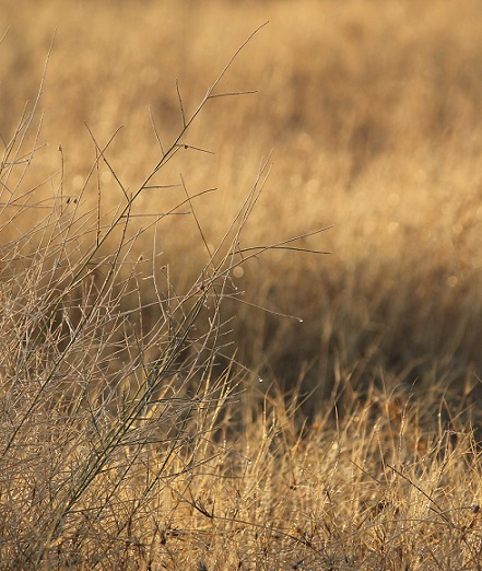 The pale shades of dawn spread gently upwards from the eastern horizon. The rest of the sky is still a dark indigo sprinkled with stars. Slowly, dim shapes emerge from the gently undulating land, like actors on a darkened stage waiting for the lights to come on. Lone thorny trees stand like shadowy sentinels, each carefully guarding its patch of dry earth. One can make out the tangled thickets of kair bushes with their delicate, angled stems, right next to the curving stalks of the akra bush with their soft large leaves. Clumps of kheemp bushes cling to the sand slopes, while the sturdy, prickly ranks of the thhor cactus stand ready to face the blaze of day. Then comes the sun, like a slow-moving impresario, revealing a vast, dramatic stage of land and sky. Tufts of wild grass sparkle gold, as angled sunlight dances off the dew on their stalks. Alongside are the silvery lines of soft white bui, the desert cotton plant.