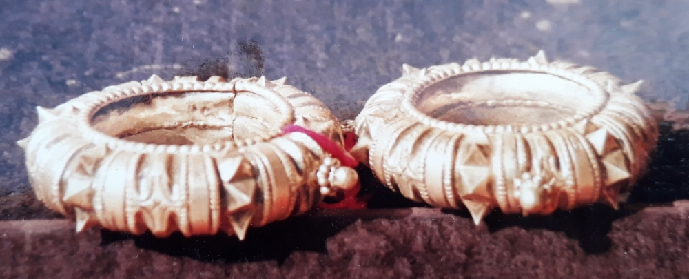 These ornaments were in use until around the time of Independence. Most have been melted to make new ornaments. Very few jewellery artisans remain who have the skills to make these: