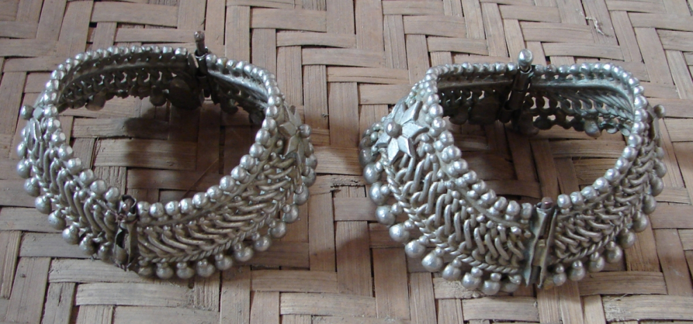 This is an anklet used by women in tribal communities. They are made of silver and have simple designs.