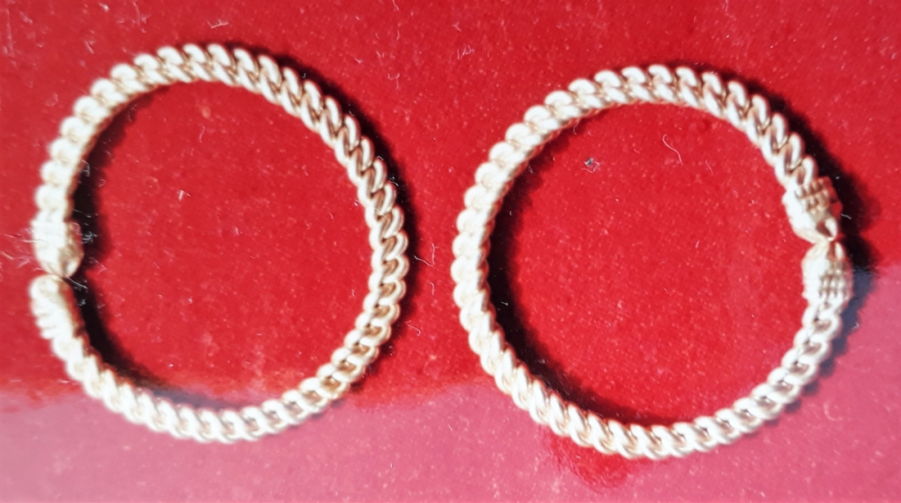 Chain kara is a type of bangle for the wrist made of silver or gilat. The weight varies from 50 gm to 200 gm.