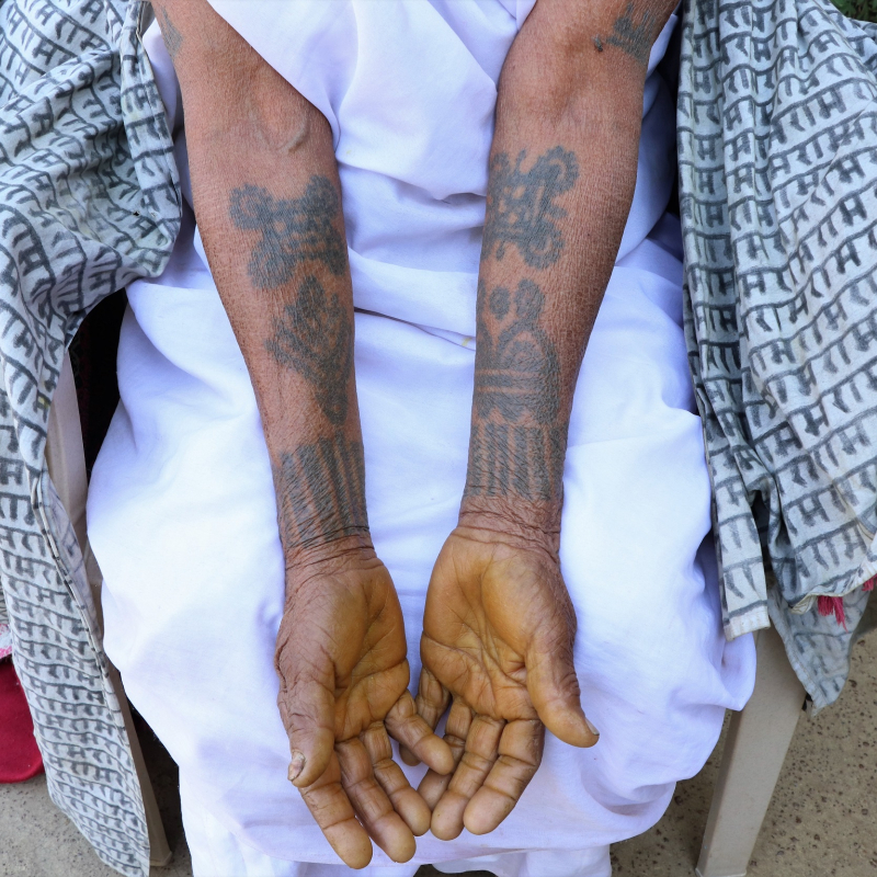 A woman with godna on her chest and hands