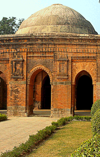 This image gallery gives a glimpse of the remains of the magnificent structures erected in the independent Sultanate of Bengal (1342–1538), of which Pandua (1342–1432) and Gaur (1432–1538) were successively the capitals. Architecture received patronage from various ruling elites, including Indo-Turkish, Arab and Habshi elites and Bengali Muslims. The built spaces exhibit a variety of influences, and are most important for showing the rise of the Bengali style which is distinctive with massive walls decorated with off-sets and recesses, octagonal corners, curved parapets and terracotta ornamentation. A regional interpretation of Islamic architecture is very well seen here.