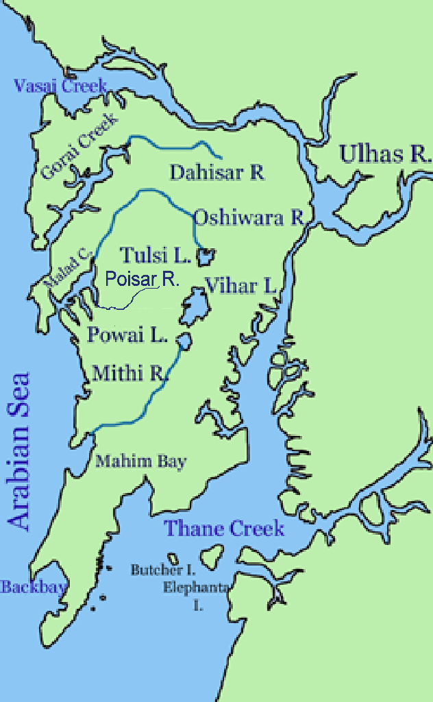 Figure 2: Map showing the Tulsi Lake, Powai Lake and rivers like Mithi, Dahisar, Oshiwara, Ulhas spread in the city. Source: Municipal Corporation of Greater Mumbai