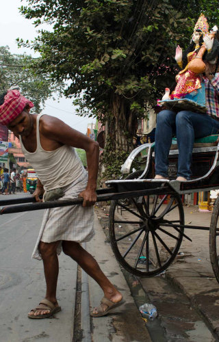 The British were the dominant colonial power in Asia and the usage of a human to pull another human definitely served in reinforcing the master-slave power hierarchy. Post World War II, colonialism declined in Asia and the hand-pulled rickshaw faded out of use from erstwhile British colonies. Strangely, the legacy of rickshaws continued in Calcutta long after the British Empire was gone (1947), and long after the communist government in China banned (1949) the use of rickshaws. Not only did it survive in Calcutta but the tenacious hand-pulled rickshaw has become an icon of the metropolis.