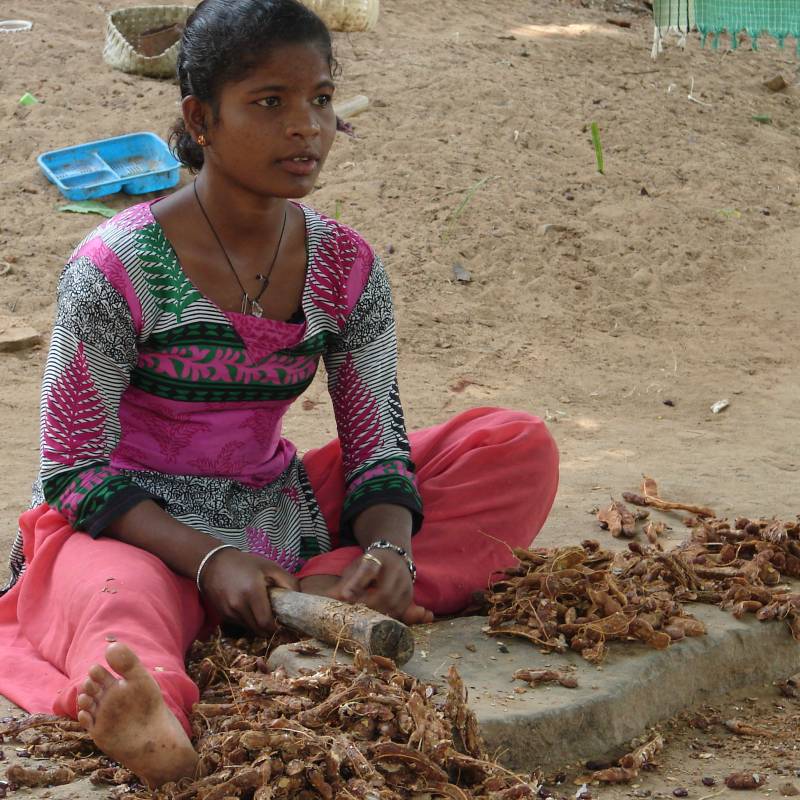 Image: Woman filling tamarind in the square mould/चौकोर सांचे में इमली भरती हुई औरत