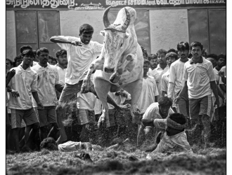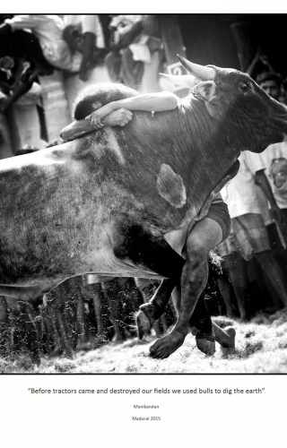 Farming in India can be challenging. A farmer has to overcome many hardships to ensure a good harvest. The harvest festival of Pongal celebrated by Tamil people across the world is an expression of gratitude to nature; Jallikattu or ‘bull vaulting’ is a part of this celebration. My family has a coconut farm near Madurai where many people working on the farm participate in Jallikattu or attend the festivities.