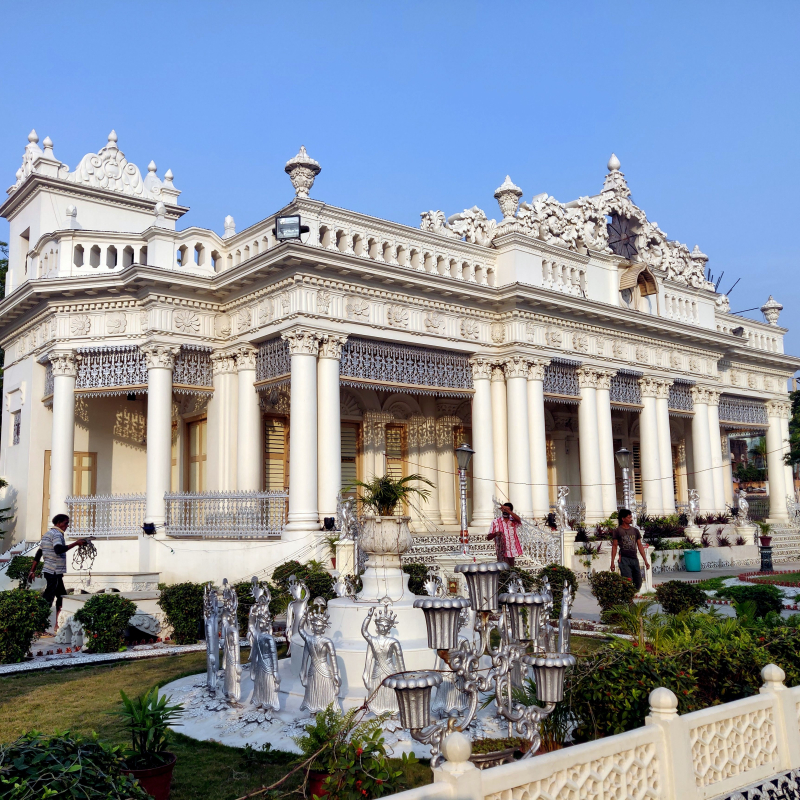 In the colonial context of Bengal, the rich and the elite who could afford to build palatial houses for themselves mostly made their fortunes by serving the empire in one way or another. Understandably, their aesthetic sense was shaped by the class they served. Imitating their rulers’ taste, moreover, made them, if not at par, but closer to them in social and political hierarchy. The result of this was the incorporation or imitation of architectural motifs and styles, or even an entire architectural structure. In Bengal examples of this include the neoclassical building of the Marble Palace with statues and fountains in the garden built in 1835 by Raja Rajendra Mullick and the royal palace of Cooch Behar (1887) that was modelled after the Buckingham Palace in London.