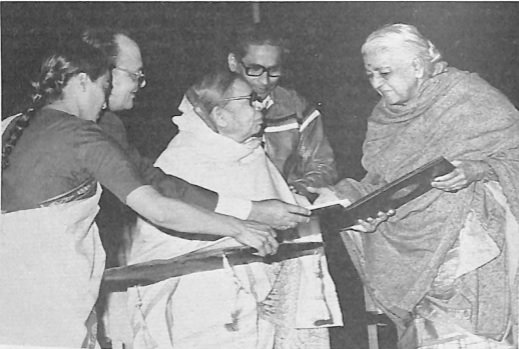 The article is a news report on Rukmini Arundale felicitated with the Kalidas Samman in 1984, for her contribution towards Indian dance.