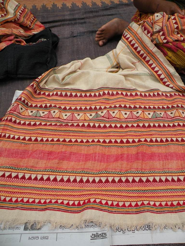 The Dongariya Kondhs are a particularly vulnerable tribal group who live in the Niyamgiri Hills in Rayagada and Kalahandi districts in east Odisha. The 2007 Census pegs their total population at 6,340 with 1,457 households across the region. The DKDA works with the community to improve health, housing, education and such areas, and is funded by the SC and ST Development Department. This training in embroidery is part of the agency's efforts to encourage women to embroider more so that they can earn an income through the sale of Kapdagondas—shawls that the Dongariya Kondh women embroider.