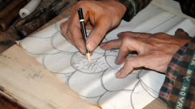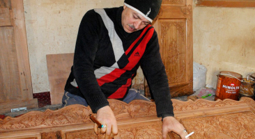 Kashmir is one of the few places in the world where the walnut tree grows at a height of 5,500 feet to 7,500 feet above sea level. Walnut wood carving is one of the important crafts in the state. Walnut wood furniture occupies pride of place in Kashmiri households; it is also an essential constituent in a bride’s wedding trousseau. The wood for carving comes from either the root or the trunk of the tree. The peculiar characteristics of the walnut wood facilitate exquisitely detailed and intricate carving. Downtown Srinagar is strewn with walnut wood workshops where you find craftsmen, renowned for their carving skills, bent over the wood, chiselling and polishing. They meticulously carve out motifs of grape bunches, chinar leaves, pears, rose, etc., in the wood. A kharkhana or workshop is headed by an ustad or master and those who work alongside him are called karigars. The work in a karkhana happens mainly on three fronts—carpentry, carving and polishing. This module carries an overview, a gallery of images from within the kharkhana and two interviews with master craftsmen. One interview is about the carving tools used in the woodwork and the other touches on the system of apprenticeship in the workshops.