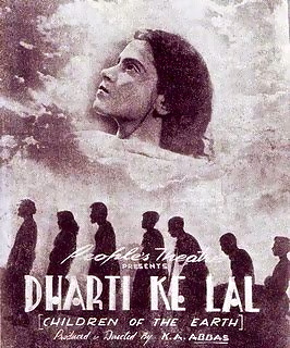 Abbas’ early career dates back to the Progressive culture and tradition that prevailed in India during the 1930s, '40s and '50s. Like many of his contemporaries he was one of the leading exponents of the All India Progressive Writers’ Association (AIPWA) established in 1936, and its allied theatre organization the Indian People’s Theatre Association (IPTA) established in 1943. As a stalwart of the PWA and IPTA, it was no surprise that the first film that Abbas directed was the classic Dharti Ke Lal (Children of the Earth). Even the cast of the film consisted mainly of actors from the IPTA. It was also the first film produced by IPTA and remains one of the most important Hindi films of the century. Based on an IPTA play, it was the first realistic film on rural indebtedness and dispossessed peasantry shown in the context of the Bengal famine. The film marked the screen debut of Zohra Sehgal and also give actor Balraj Sahni his first important screen role.