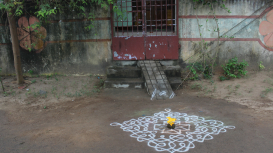 This module is a study of kolam, an everyday ritualistic floor art form practiced mostly by Hindu women from Tamil Nadu. It offers a glimpse of the various stages in kolam making in both urban and rural settings in the cities and towns nearby Chennai and Pondicherry along with images of kolam copy books, stencils and stickers that offer a quick alternative to traditional kolam. The articles present ethnographic and socio-historical perspectives on the deep rooted connection of kolam with ecology and gender. The documentation makes visible the importance of kolam in Tamil culture, emphasising its inherent mathematical precision. The attempt is to explore the inherent spiritual, playful and ephemeral aesthetics of kolam as a daily act of creating, erasing and recreating.