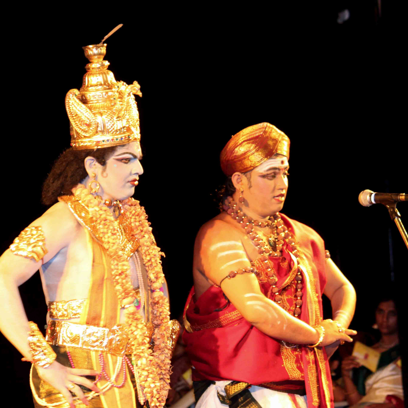 Siddhendra Yogi wrote many Kalapams. He primarily developed a unique and particular style based on the Natyasashtra and Nandikesvara’s Bharataraṇava. He initiated young Brahmin boys to Bhama Kalapam. The actual training of the actors was developed to turn them into Bhagavatula, or performers of the Bhagavata Mela Natakams (theatres), which are prevalent until this day—making glorious history in Kuchipudi.