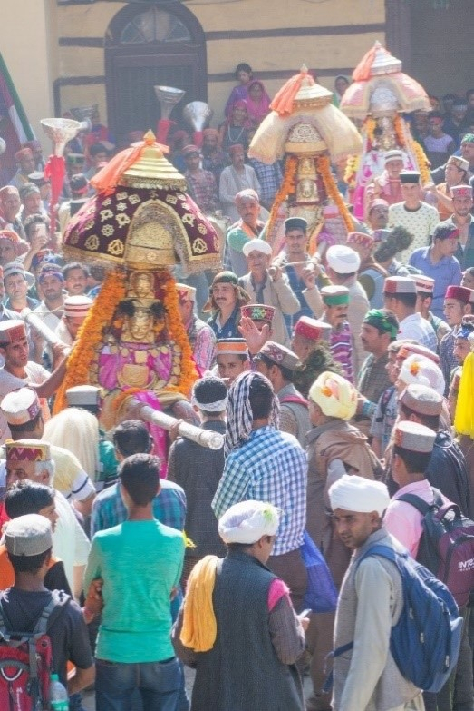 The concept of demigods, or devtas, is ancient and is prevalent across the Himalayan region. The belief that these demigods rule over the land as owners, and take care of the people and their possessions, has led to a unique cultural system in the region. Traditionally, demigod worship is based on the concept that people work for the god and in return the god provides them with sustenance and protects them from harm. Each village worships its own devta, and devtas themselves have a leader who presides in their region or ‘kingdom’ and to whom they report. Each kingdom in Himachal Pradesh has one main devta whose priests and caretakers are members of that royal family. Kullu, a small town in Kullu district of Himachal Pradesh, is a good example of this system. This is where Kullu Dussehra, an internationally renowned festival in celebration of Dussehra, is held every October.