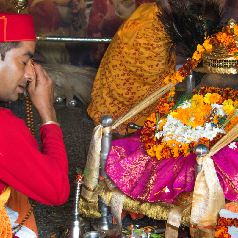 Finally, Krishan Dutt (Pahari Baba) offered his guidance and said that no medicine would be able to cure the king except the blessing of Lord Rama. He suggested that the king take the charanamrit (holy water) of an idol of Lord Rama. The king had no choice but to order his courtiers to bring him a Lord Rama idol from Ayodhya. This task was entrusted to Damodar Dass, a disciple of Bairagi (Saint) Krishan Dutt. Damodar Dass had a miraculous power through which he was able to procure the idol from Ayodhya for the king in July 1651. He also brought a pujari (priest) from the Tret Nath temple in Ayodhya. The idol was installed near the Rupi Palace in Raghunathji's temple at Sultanpur. Priests were brought from Ayodhya to conduct special rituals for Raghunathji, and their descendants still conduct these rituals (Singh 2016).