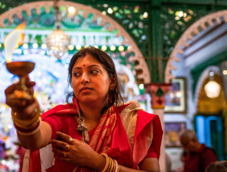 Durga Puja (worship of Durga) is a major religious festival for Hindus in West Bengal, Bihar, Tripura, Odisha, Assam, Mithila and other parts of India and Bangladesh. In the rest of India, it coincides with Navaratri and Dussehra, and with Dashain in Nepal, all of which signify the victory of good over evil. Durga Puja is celebrated in autumn (Sharad), in the months of September or October. In Kolkata, Durga Puja was first organised in 1610 CE by the Sabarna Roy Chowdhury family at their ancestral home at Barisha. They were zamindars (hereditary landowners with the right to collect tax) during the Mughal period and held zamindari rights of Sutanuti, Gobindapur and Kolkata villages, which were acquired by the British East India Company (BEIC).