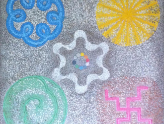 This image gallery presents the most important works of artist K.V. Haridasan (1937–2014). Haridasan firmly believed that Indian traditional knowledge was rooted in mysticism and that contemporary Indian art should take its cue from the past. His most famous 'Brahmasutra' painting series featured in this gallery stands testimony to his view of art as a vehicle providing harmony and rejuvenation to the mind. As a Neo-Tantra painter Haridasan's contributions are immense. His booklet, Intimations, on Art, Indian, Western, Modernity, Tradition and Tantra articulated his views on art as an inevitable tool for the mind. Haridasan, in his paintings, worked with the traditional patterns, symbol and designs used in Tantric drawings in an attempt to create a healing effect in the minds of the viewers.