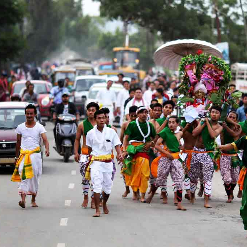 Lai Haraoba is a religious festival celebrated by the Meitei people who are largely settled in and around Manipur. It is held at neighbourhood shrines dedicated to the local umanglai deities. These is a generic category of deities within the religious faith of the Meiteis that pre-dates the period of Hinduisation. There are no particular dates assigned in the Meitei calendar for the festival. However, it is observed in the months between February and May-June. When the time of year arrives, shrines set their own dates for the festival. The ritual that is a part of the event is not a single day affair. Theoretically, it can be as short as three days or can even exceed a month. In other words, the duration of the festival is flexible and differs across shrines. Each shrine usually decides the date and duration of its festival. The Lai Haraoba festival is celebrated not only in Manipur, where the Meiteis are primarily based, but also in neighbouring areas where the Meitei people have settled–such as Assam, Tripura, Bangladesh, and Myanmar.
