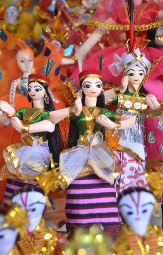 The relevance of laidhibi in the realm of religion and ritual has remained the same but the physical form of laidhibi, with time, has undergone a sea change. The simple laidhibi made from rags have been replaced by those wearing colourful and ornate potloi (ornamental lower dress), elaborate jewellery and accessories. There are laidhibis wearing ghagra, perfectly fitting blouses and those with delicate wings. Influences of Disney characters such as Cinderella, Anna and Elsa are unmistakable. Some doll makers even include long eyelashes, which is not a Mongoloid feature.