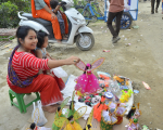 After an early lunch, the children, usually girls, would gather at the porch of a friend’s house, each with their bamboo basket. Children would take the laidhibi out from the basket and enact the life they saw around them, giving each laidhibi a role and responsibility observed in the adults’ world. When the play session was over, the laidhibi would be carefully placed inside a basket. They would be placed in a horizontal position, sleeping on a folded cloth that worked as mattress and pillow, and lovingly tucked under a blanket. They would sleep till the next play session.