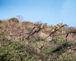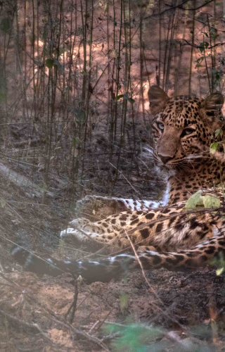 The forest cover at Jhalana mostly comprise of kikar (Prosopis juliflora), a species of thorny plant and tall dry grass. Prosopis juliflora is a non-native plant, introduced to provide source of firewood to local villages, but it has since become an invasive species, resulting in reduction of grassland cover. Grasslands are essential for the leopard’s prey and its availability can affect prey density, thus affecting a leopard’s movement pattern and hunting territory.The grasslands also provide excellent camouflage. Their rosette marked pale orange-yellow colour coats help to blend perfectly into the rocky terrain. They are excellent climbers and can be spotted either resting on top of trees or taking a nap in the shadow of thickets.
