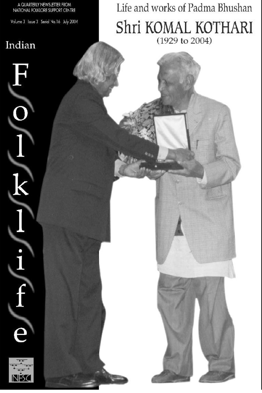 Indian Folklife, a quarterly newsletter published by National Folklore Support Centre, Chennai, paid tribute to the life and works of Padma Bhushan Shri Komal Kothari with a special issue. The issue features Komal Kothari's important article on folk narratives among other important articles.