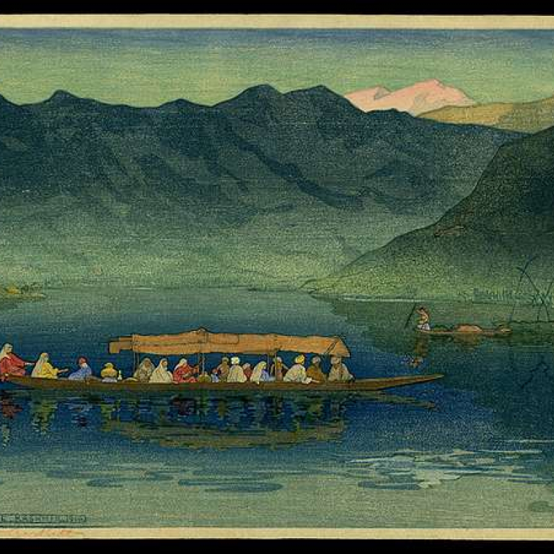 Dal Lake, Kashmir by Charles W. Bartlett, 1916, woodblock print. (Picture Source: GetArchive)