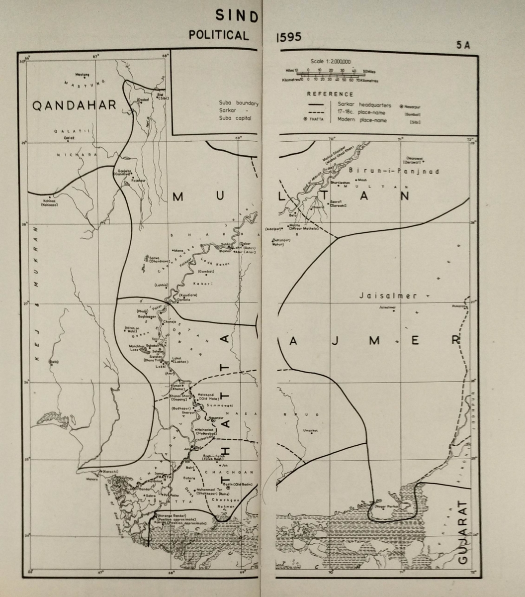 Sind Political 1595 Map. Both maps have been reproduced here with kind permission of Irfan Habib © Irfan Habib. First appeared in An Atlas of the Mughal Empire. 1982. New York & New Delhi: Oxford University Press.
