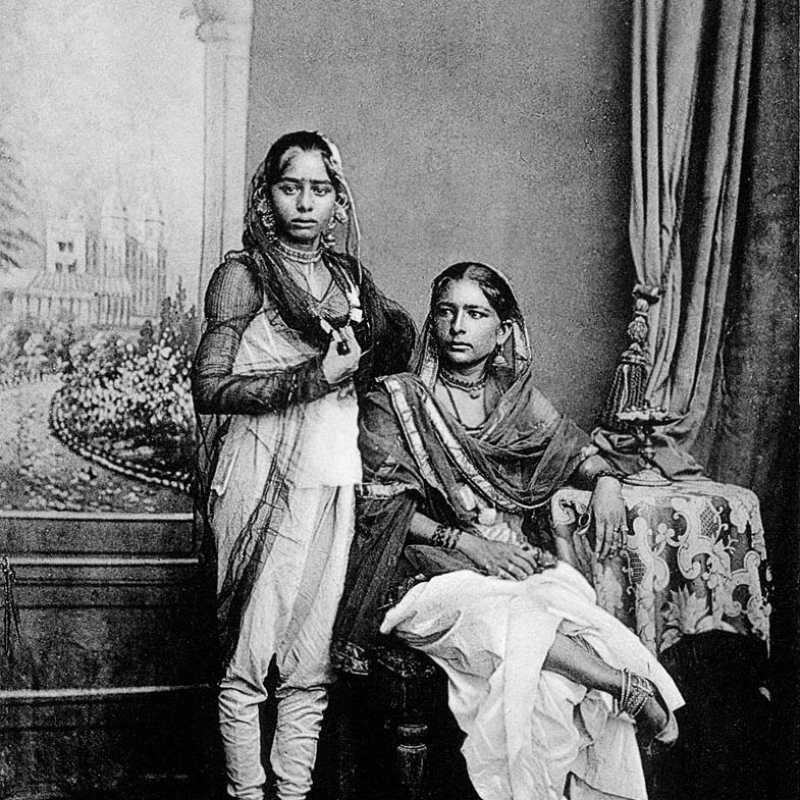 These two dancing girls are likely from Lucknow, suggested by the painting of Chattar Manzil in the studio background, 1905. (Picture Credits: Johnston & Hoffmann/Wikimedia Commons)