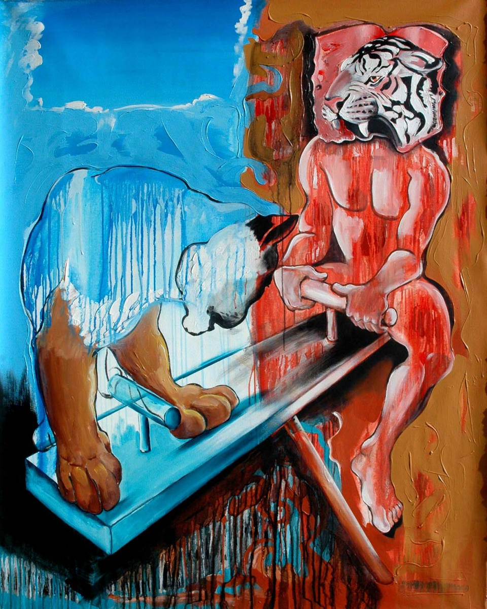 Fig. 12: ‘See Saw Gajini 1’ (2008); acrylic on canvas; 5 feet x 4 feet