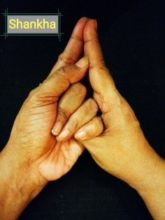 The Sakta tantric text, Kalikapurana, written at Kamarupa in the 11th or 12th century AD, mentions 108 mudras—dhenu (cow), samputa (bowl), pranjali (joint palms), bilva (wood apple), padmaka (lotus), naraca, munda (head), danda (stick), yoni (female organ), vandani (supplicating), mahamudra (great mudra), mahayoni (great or holy yoni), bhaga (female organ), putaka (funnel-like leaf bag), nisanga (variant: nihsanga or accompaniment), ardhachandraka (half-moon), anga (limb), dvimukha (the two-faced), sankha (conch), musti, vajra (thunder-bolt), randhra (hole), satyoni (yoni), vimala (the pure), ghata (pitcher), sikharini (Goddess of Power), tunga (the elevated), urdhuapundra (upright mark on the forehead), sammilani (closing), kunda (pot-hole), chakra (discus), sula (javelin), simhamukha (lion’s mouth), gomukha (bull’s mouth), pronnama (the high-rising), unnamana (getting up), bimba (disc, orb), pashupata (Shiva’s bow), Suddha (the pure), tyaga (sacrifice), sarini (the moving), prasarini (the extending), ugra (the terrible), kundaliyyatha (spiral formation), trimukha (three-mouthed), asiualli (sword’s blade), yoga bheda (cleaving), mohana (the enchanting), vana (arrow), dhanu (bow), and tunira (quiver) (Neog 1991).