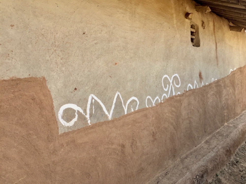 One of the biggest challenges faced by the women artists are the compulsions of time. The completion of a mural may take between one week and one month (in addition to the preparatory effort of procuring coloured clays), depending on the complexity of design. The women artists typically balance their domestic and agricultural responsibilities with the task of painting. The hours of the morning are taken up by tending to cattle, cleaning the house, gathering wood for fire, and food preparation. It is after lunch and just prior to the return of cattle from grazing at dusk that women typically find the time to paint the walls. This window of opportunity is further narrowed when women work as daily wage labourers since they themselves return home at dusk. In such cases, women attempt to paint the walls little by little in the fading evening light, or often, do not paint at all. The weather affects the schedule of painting as well. Women have to wait for the end of the monsoons in order to begin painting. Bearing in mind the constraints of time and the weather (in terms of the end of the monsoons), women may begin preparations for painting the murals upto one month in advance. The year this study was carried out (2017) saw a protracted monsoon which, unusually, carried on until early November. The window for painting murals thus coincided with the time for harvesting paddy. In short, the production of painting and the elaborateness of designs is directly linked to quantum of domestic responsibilities and the time available to the women artists.