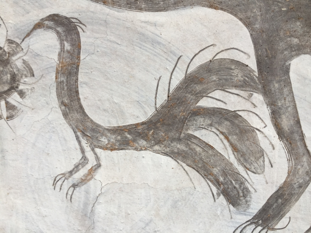 Fig. 3. Clay plaster in preparation for painting a mural; note the white lines which are remnants of the previous mural