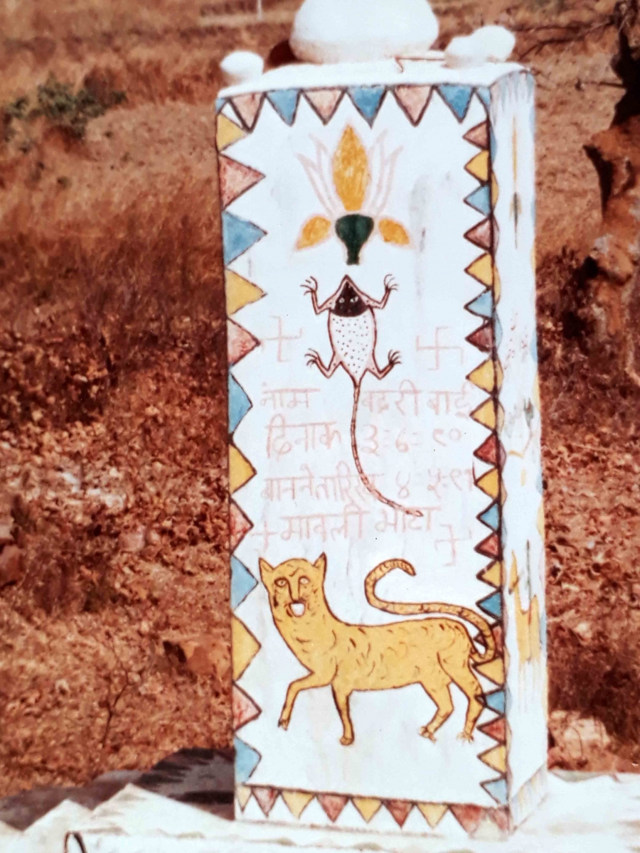 Paintings made with ready-made colour replace relief carvings on Madia memorial pillars