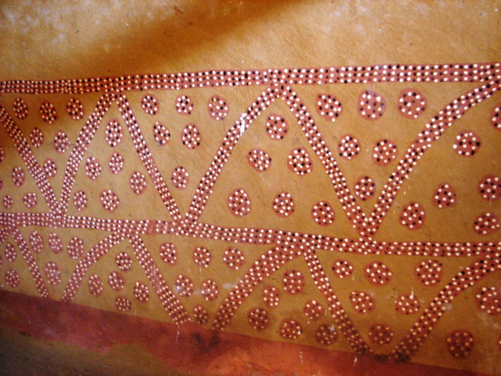 Bastar District in Chhattisgarh is home to many tribal groups. None have significant painting traditions. The Gond, Muria and Madia (Maria), the main tribal groups of the area, have a fine tradition of woodcarving but do not have a well-established painting tradition. The Bhatra and Parja tribes decorate the doors, windows and niches of their huts with red and black clay borders, sometimes with rows of red, black and white dots, but that has been the extent of their painting.
