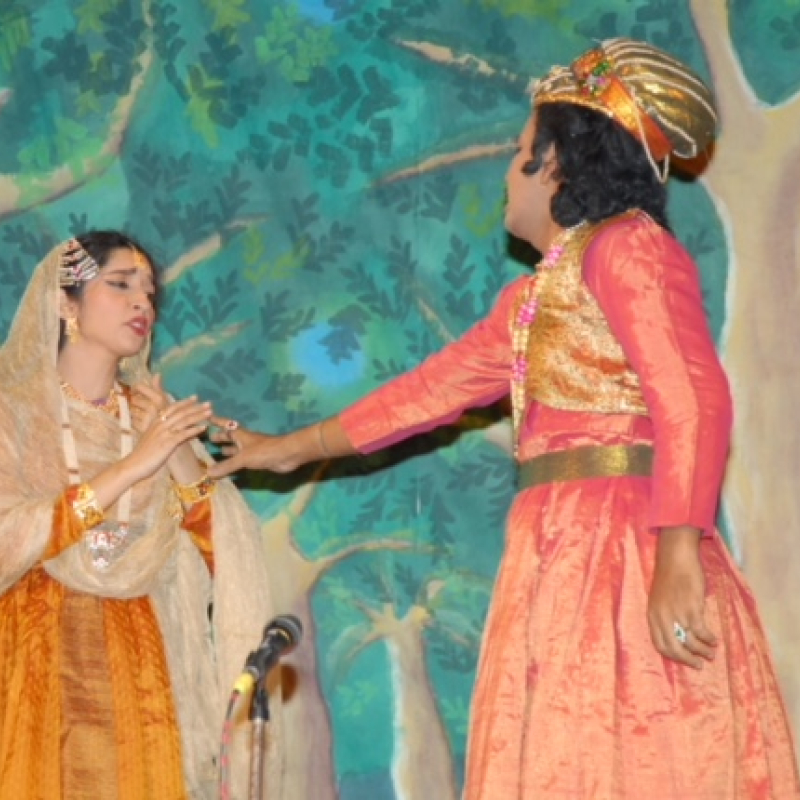 ‘Anārkali’ of Dr V. Raghavan, first staged under the direction of the author himself, is one of the best examples of Samskrita Ranga’s productions where music is given great prominence. In fact, the author has skillfully embedded a lot of information on various aspects of Indian music, including descriptions about the South Indian and North Indian classical music systems, as part of the discussions that take place in Akbar’s court. It is noteworthy that this production involves musical elements, not only for enhancing the expression of verses and the dramatic contexts, and not only in the scene where Anarkali performs in the South Indian style of music and dance, but also as an essential component of the content of the dialogues, as seen from the above-mentioned discussions. The author has aptly employed characters like Tansen and Paṇḍarika Viṭṭhala who contribute to the informative and engaging discussions on music. Interestingly, this serves as an effective ruse to establish the historic context in which the play is located and, at the same time, gives a contemporary feel by employing raga names that are in vogue till date.