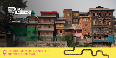 This curation presents a journey through Srinagar’s many dimensions. A Historical Outline traces the journey of Srinagar from prehistoric times to the modern era, highlighting remnants of the past that still stand as silent storytellers. Shehr-e-Khaas offers a poetic ode to the city's old quarters along the Jhelum, where architectural elements such as pinjrakari, zoon daeb and dhajji dewari define its unique urban fabric, making it a living heritage.