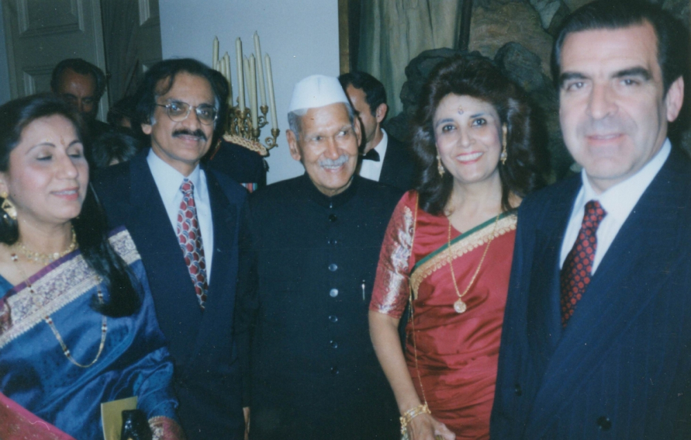 Lunch reception at the Presidential Palace in Santiago, in honour of Indian president Shankar Dayal Sharma in May 1995: Pushpa Daswani, me, Indian president Shankar Dayal Sharma, my wife Sapna, Chilean president Eduardo Frei