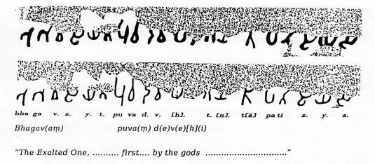 Figure 4 The oldest painted inscription, Ajanta Cave 10. Source: (#8(2), Schlingloff 2013, vol. I, 50)