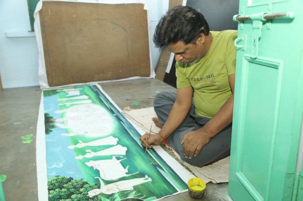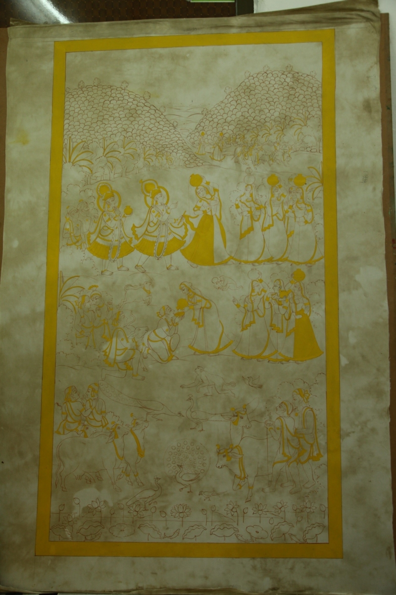 Harishchandra Swarnakar, Krishna Leela painting, undercoat, 2014