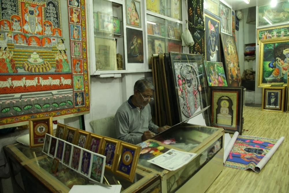Murlidhar Sharma (60 years old): Murlidhar was trained under his father. His Ajanta Art is among very few shops where Shrinathji idol paintings, pichhwais, manoratha and Krishna Leela paintings are prepared according to the demand of the connoisseurs and devotees.