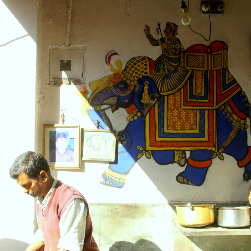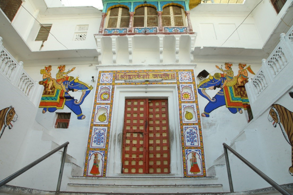 Nathadwara is a small town some 40 kilometres north of the Udaipur city in Rajasthan. In nathadwara, Udaipur, Rajsamand district and the places around, most of the buildings have their doorways flanked by paintings of elephants with mahauts, tigers, peacocks and bejewelled females. Shrinathji, the principle deity of Nathadwara is a living deity for the devotees and therefore the place where Shrinathji resides is called haveli. The structure of the haveli consists of various rooms linked by verandas, passages and courtyards, which is very different from temple architecture.
