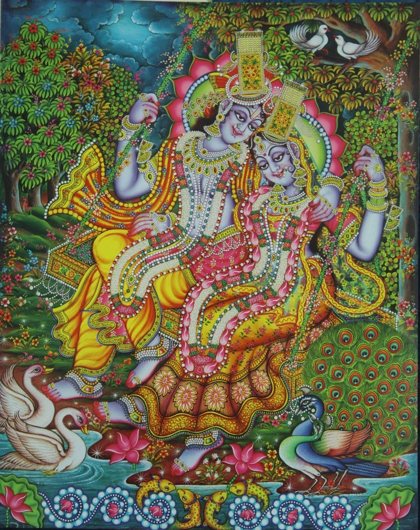 Harishchandra Swarnakar, Krishna-leela painting illustrated for 'Yamunashtakam Granth', Acrylic on canvas