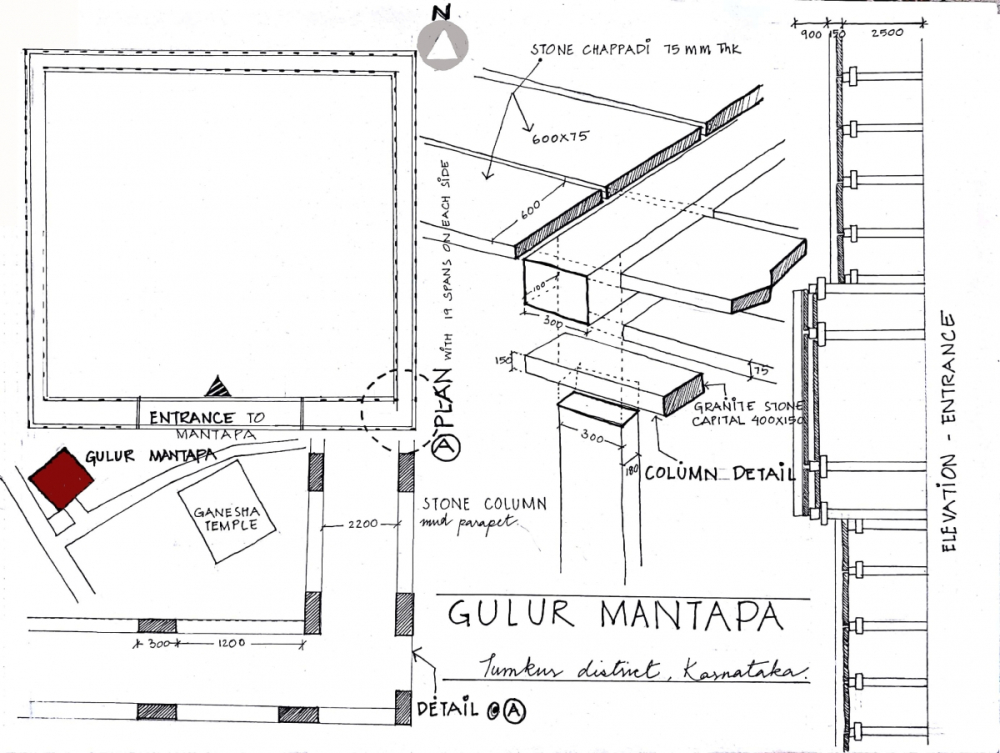 Stone roofing: Mantapa at Guluru, Tumkur district, Karnataka