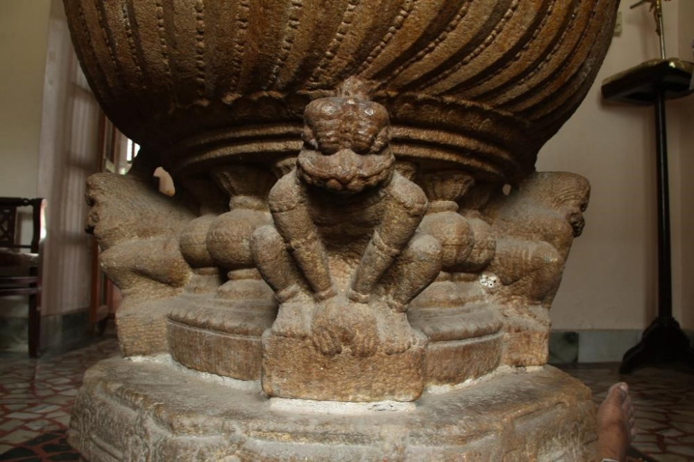 Fig. 2. Simhavyala carrying the baptismal font, made of granite, St. Mary’s Church, Kanjoor (Photo: Antony Joseph Nangelimalil)