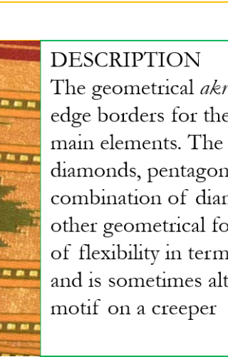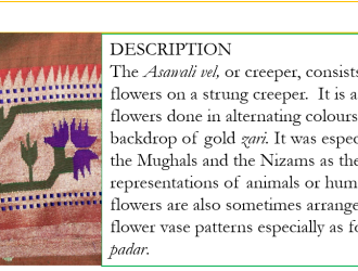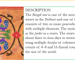 This photo documentation is a brief description of the motifs commonly found on a Paithani saree. Each motif has its own story, history and technique of weaving. The simplest motif is the Tota (parrot) while the most difficult is the Bangdi Mor (peacock).